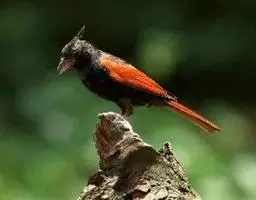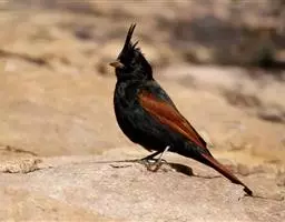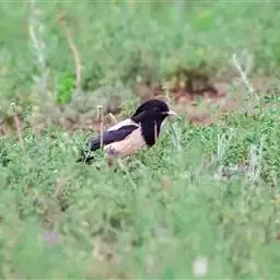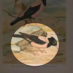 粉红椋鸟是雀形目椋鸟科粉红椋鸟属鸟类。头顶具紫色羽冠;头部、颈、颏、喉黑色具蓝紫色金属光泽;背和腹粉红色;两翅和尾黑褐色;虹膜暗褐色;嘴黄色或粉红色,上嘴基部黑色,冬季嘴为褐色;脚黄色。嘴较其他椋鸟短而钝,上嘴弯曲较明显;脚较粗壮,爪发达。粉红椋鸟分布于欧洲东南部、西伯利亚、西亚、印度和斯里兰卡岛等地区,在中国新疆西部和北部、西藏西部、澳门、台湾等地也能看到其身影。栖息于干旱平原、荒漠或半荒漠地区。常成群活动,鸣声嘈杂。主要在地面觅食,以甲虫、蝗虫、毛虫等各种昆虫为食,偶食植物果实和种子。繁殖期5—7月,营巢于岩壁缝隙、树洞中,每窝产卵4—6枚,卵白色或淡蓝色,孵化期13—15天。雏鸟晚成性,由雌雄亲鸟共同喂养。粉红椋鸟种群数量较少,已被列入中国国家林业局2000年8月1日发布的《国家保护的有益的或者有重要经济、科学研究价值的陆生野生动物名录》。