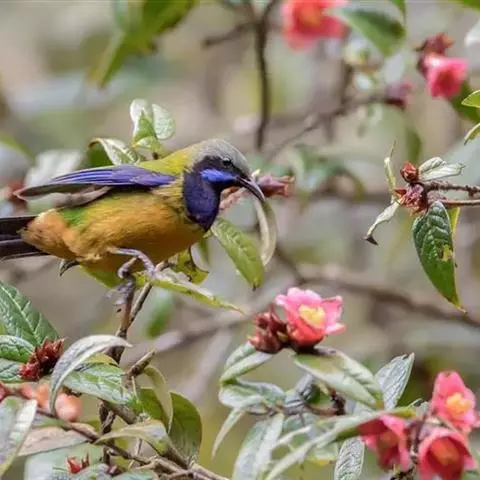 绿喉太阳鸟:共有9个亚种。小型鸟类,雄鸟体长13-15厘米、雌鸟10-12厘米。…