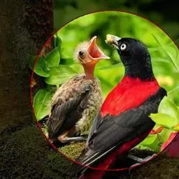朱鹂:中等鸟类,体长23-28厘米。雄鸟绛紫红色,头、上胸及翼黑色。雌鸟上背及背部深灰色,…
