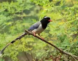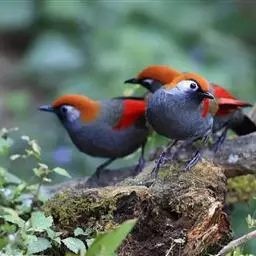 赤尾噪鹛中型鸟类,体长24~28厘米。头顶至后颈红棕色,两翅和尾鲜红色,眼先、眉纹、颊、颏和喉黑色,…