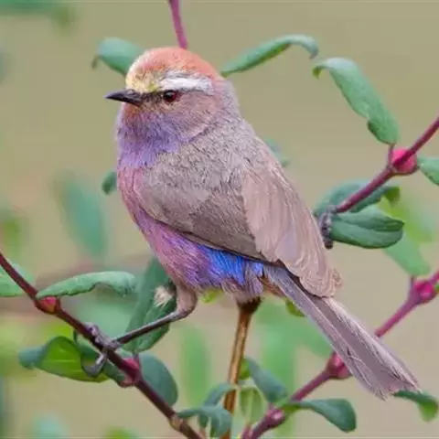 花彩雀莺:体长9-12厘米,是一种毛茸茸偏紫色的雀莺。顶冠棕色,眉纹白。尾长,羽毛松软。…