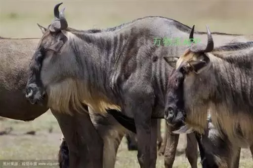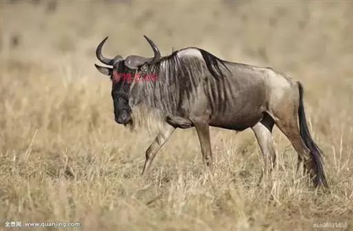 角马是生活在非洲草原上的大型羚牛 ,长得牛头、马面、羊须。头粗大而且肩宽,很像水牛;后部纤细,比较像马;颈部有黑色鬣毛。全身有长长的毛,光滑并有短的斑纹。全身从蓝灰到暗褐色,有黑色的脸、尾巴、胡须和斑纹,颜色也因亚种、性别和季节的不同而有所变化。角马个头硕大,体重可达270公斤,一般寿命都在15到20年左右。
