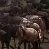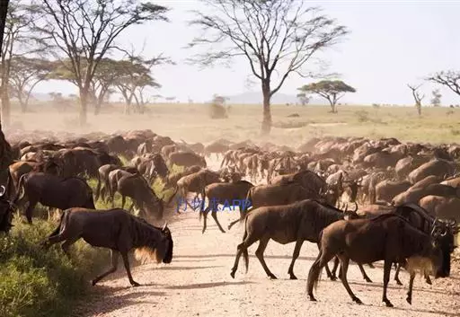 角马生活在非洲广阔的草原上。雨季期间,雨水充足,角马栖息在广阔的草原上。但到了旱季,为了寻找新鲜的草料,非洲角马不得不离开这里,它们聚集起来,数量多达150万头,成群结队地去寻找食物,每天要走48公里。