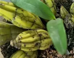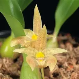 长叶山兰:假鳞茎椭圆形至近球形,有2-3节,外被撕裂成纤维状的鞘。叶2枚,偶有1枚,生于假鳞茎顶端…