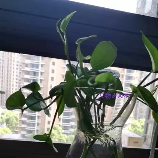 绿萝是阴性植物,喜散射光,较耐阴。它遇水即活,因顽强的生命力,被称为“生命之花”。蔓延下来的绿色枝叶,非常容易满足。室内养植时,不管是盆栽或是折几枝茎秆水培,都可以良好的生长。既可让其攀附于用棕扎成的圆柱上,也可培养成悬垂状置于书房、窗台,抑或直接盆栽摆放,是一种非常适合室内种植的优美花卉。