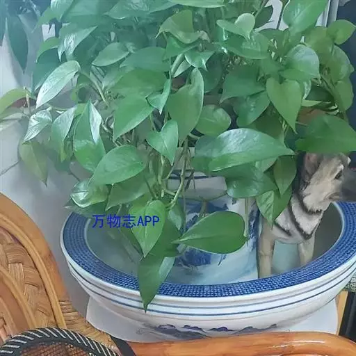绿萝,属于麒麟叶属植物,大型常绿藤本,生长于热带地区,其缠绕性强,气根发达,野外常攀援生长在雨林的岩石和树干上,室内种植可以水培种植。具有很强的观赏价值和药用价值,也可净化室内空气。但液汁有一定的毒性,猫咪吃到叶子有可能引起中毒。
