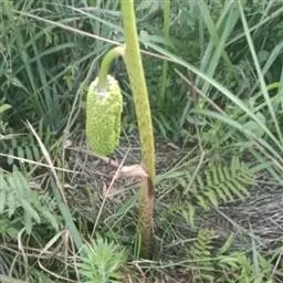 滇魔芋为天南星科植物滇魔芋的块茎。块茎扁球形。叶1枚;叶柄长达1米,有白绿色斑纹;具3小叶,2歧分叉,…