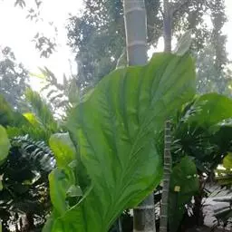 野芋是天南星科芋属一年生湿生草本植物。块茎球形;叶柄直立肥厚,长达1米以上;叶片薄革质盾状,…