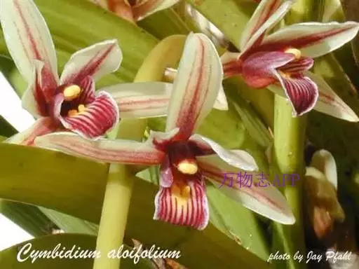纹瓣兰(学名:Cymbidium aloifolium (L.) Sw.)附生植物,假鳞茎卵球形,通常包藏于叶基之内,叶4-5枚,厚革质,花葶从假鳞茎基部穿鞘而出,下垂,长20-60厘米,萼片与花瓣淡黄色至奶油黄色,萼片狭长圆形至狭椭圆形,花瓣略短于萼片,狭椭圆形,花期4-5月,偶见10月。