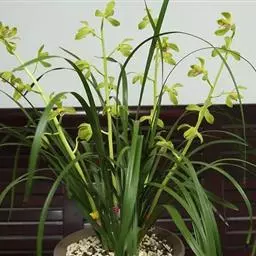 建兰素花,绿白色,清香,一枝开花5至12朵。叶色钢青,细而挺拔,有铮铮铁骨之相,所以叫铁骨素。在日…