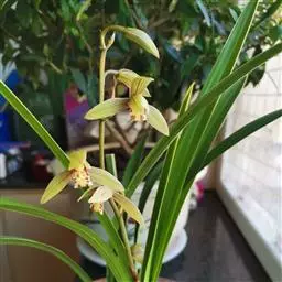 寒兰是兰科兰属的地生草本植物。茎为椭圆形;叶呈带状,尾部修长渐尖,叶脉较明显;每秆花枝开5-12朵,…