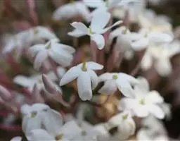 聚伞花序顶生,通常有花3朵,有时单花或多达5朵;花序梗长1-4.5cm,被短柔毛;苞片微小,锥形,长4-8mm;花梗长0.3-2cm;花极芳香;花萼无毛或疏被短柔毛,裂片线形,长5-7mm;花冠白色,花冠管长0.7-1.5cm,裂片长圆形至近圆形,宽5-9mm,先端圆或钝。果球形,径约1cm,呈紫黑色。花期5-8月,果期7-9月。