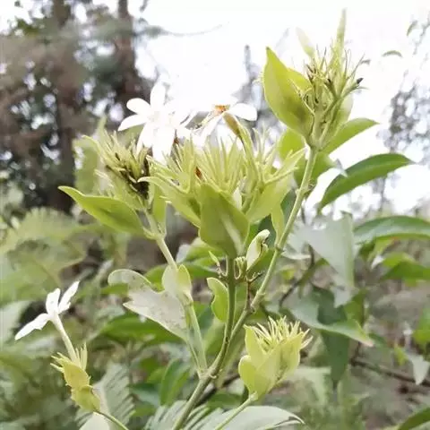 花蕾卵圆形,顶部较平或稍尖,也称平头茉莉。