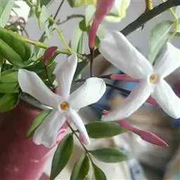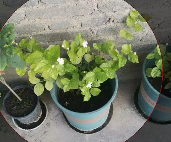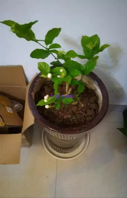 茉莉花 装土定植:首先按苗株大小选用合适的花盆并装土,要求培养土富含有机质,具有良好的透水和通气性能。