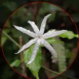 单瓣茉莉植株较矮小,高70-90厘米,茎枝较细,呈藤蔓型,故有"藤本茉莉"之称。 单瓣茉莉 叶片为椭圆形,叶质较薄,叶端稍尖,全缘,长5-9厘米,宽3,5-5,5厘米。花冠单层,裂片(花瓣)少,7-11片,每片长约1,3厘米,宽1厘米,呈椭圆形,洁白,表面微皱,顶端稍尖,所以又称尖头茉莉。