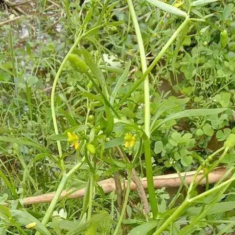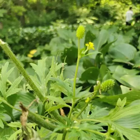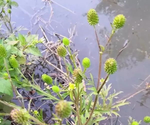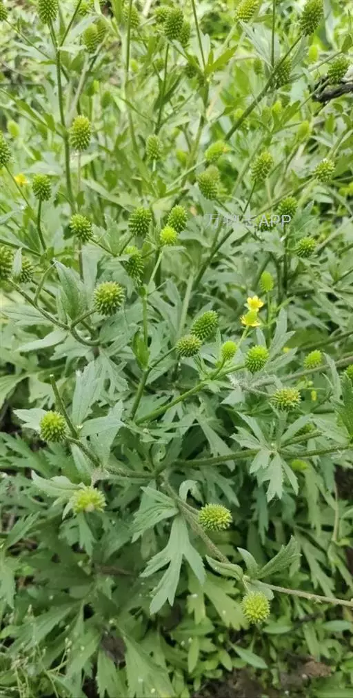 茴茴蒜(学名:Ranunculus chinensis Bunge)是毛茛科,毛茛属一年生草本植物。须根多数簇生。茎直立粗壮,高可达70厘米,分枝多,与叶柄均密生开展的淡黄色糙毛。叶片宽卵形至三角形,裂片倒披针状楔形,顶端尖,两面伏生糙毛, 侧生小叶柄较短,生开展的糙毛。花序有较多疏生的花,花梗贴生糙毛;萼片狭卵形,花瓣宽卵圆形,与萼片近等长或稍长,黄色或上面白色,花托在果期显著伸长,圆柱形,聚合果长圆形,瘦果扁平,5月至9月开花结果。