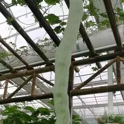 ①搭架。当苗长到30厘米时要及时搭架,在小行中间每隔1米用长1.5米的木棍或竹杆插人字架,再用竹片或细棍横拴于人字架两侧,每侧各栓两道,人字架顶部横拴1道,使整个架连成整体,以供红瓜茎蔓攀爬。架搭好后,要人工引茎蔓上架,让其嫩茎或卷须缠绕于最底下的一道横杆上,以后便可自行攀爬上架了。