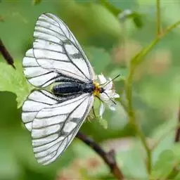 冰清绢蝶:是绢蝶科、绢蝶属的一种蝴蝶。翅展60-70毫米。翅白色,翅脉灰黑褐色。…