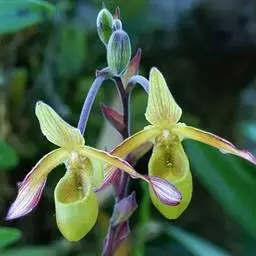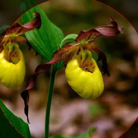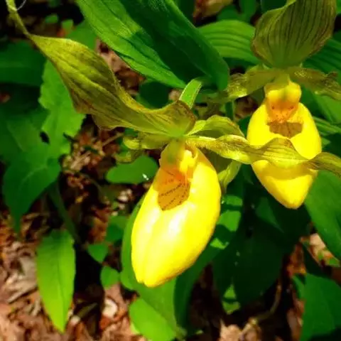黄花杓兰(学名:Cypripedium flavum P. F. Hunt & Summerh.):植株通常高30-50厘米,具粗短的根状茎。茎直立,密被短柔毛,基部具数枚鞘,鞘上方具3-6枚叶。叶片椭圆形至椭圆状披针形。花序顶生,通常具1花,罕有2花;花黄色,有时有红色晕,唇瓣上偶见栗色斑点;花瓣长圆形至长圆状披针形,稍斜歪,长2.5-3.5厘米,宽1-1.5厘米,先端钝,并有不明显的齿,内表面基部具短柔毛,边缘有细缘毛;唇瓣深囊状,椭圆形。蒴果狭倒卵形,被毛。花果期6-9月。