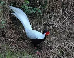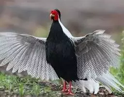 黑长尾雉大型鸡类,体长53~88厘米。雄较雌大。雄鸟通体紫蓝色,脸鲜红色,翅上有一条显著的白色翅斑…