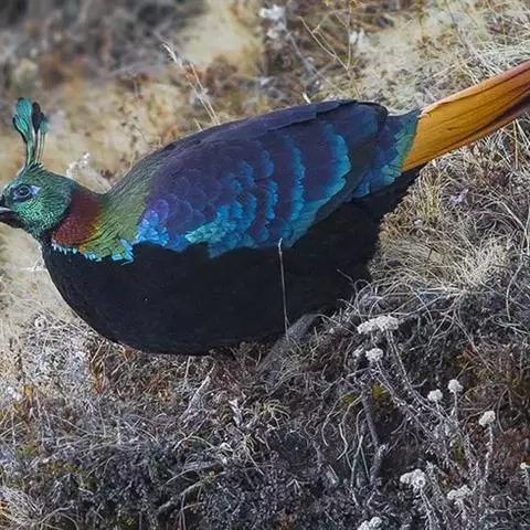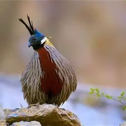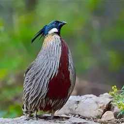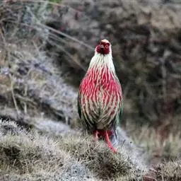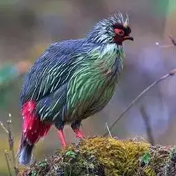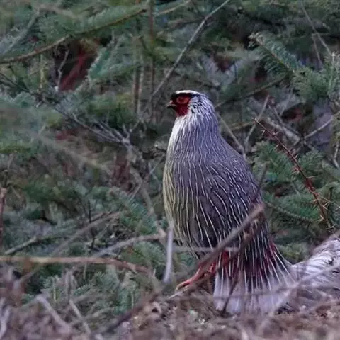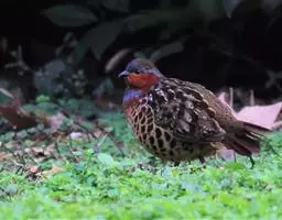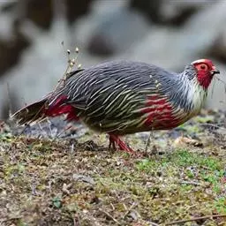 血雉雉科血雉属鸟类,别名血鸡、松花鸡,血雉的雄鸟大覆羽、尾下覆羽、尾上覆羽、脚、头侧、腊膜为红色,…