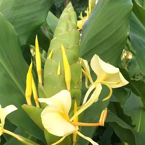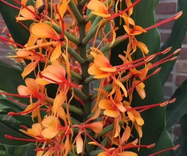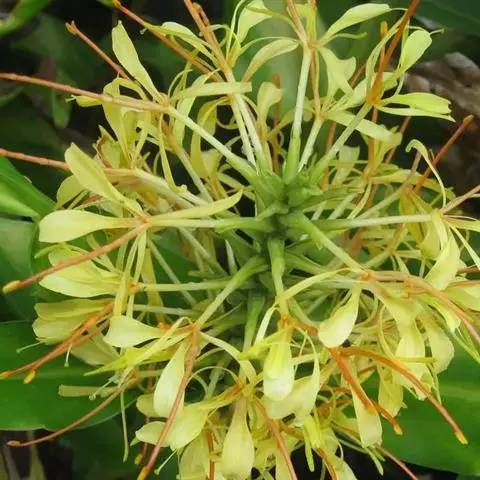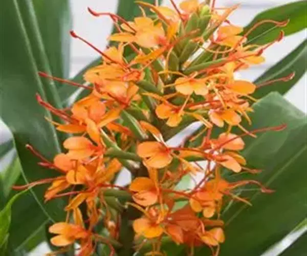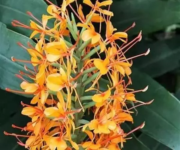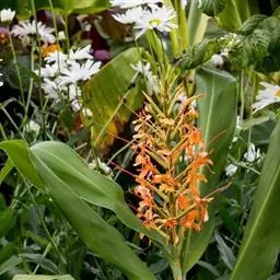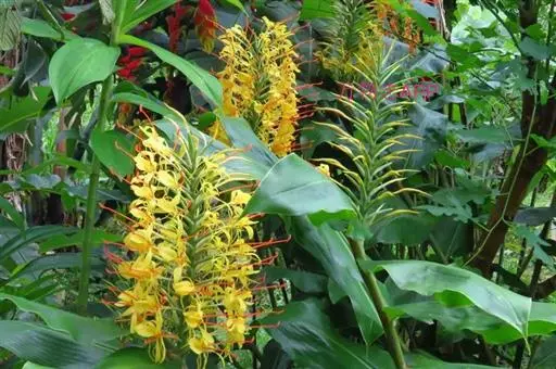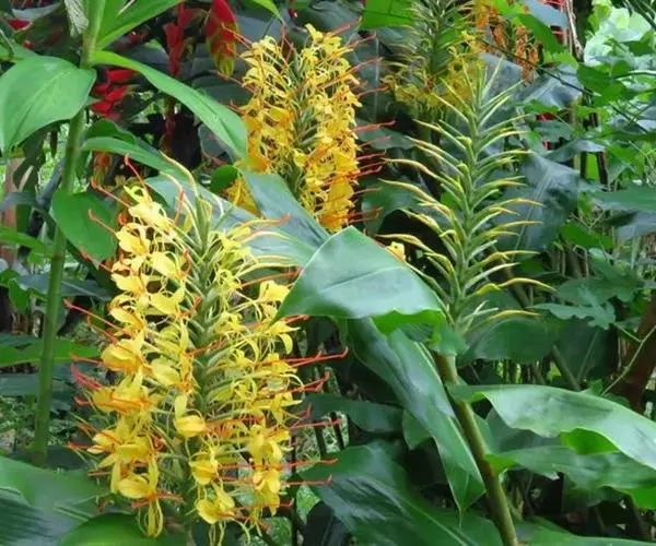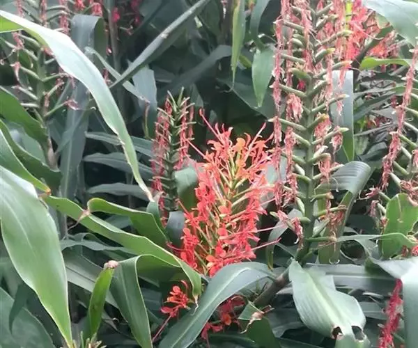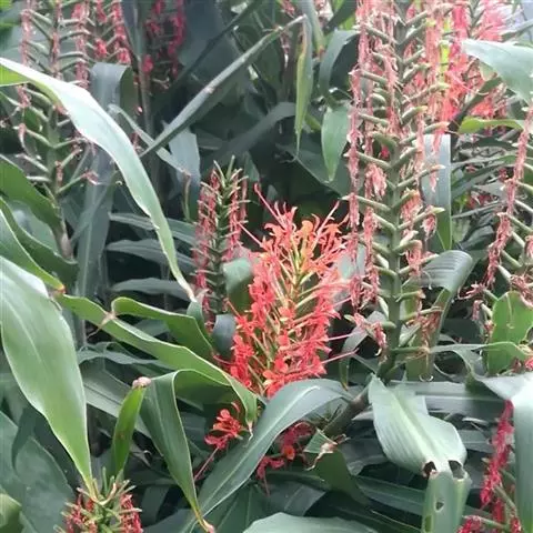 红姜花的整个花序婷婷玉立,火红如炬,圆柱形的花柱从四面八方开出朵朵红花,花期长,极为美丽。在欧美已选育出了许多园艺品种。该种花卉粗生易管,稍加驯化即可进入园林观赏。