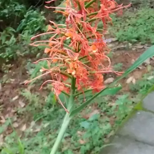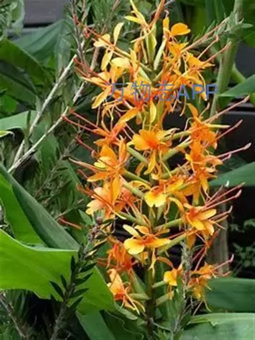 红姜花(学名:Hedychium coccineum Buch.-Ham.),姜科,姜花属多年生草本植物,高可达2m。叶片狭线形,穗状花序多较稠密,圆柱形,花红色。蒴果开裂,种子红色。6-8月开花,10月结果。