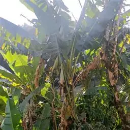主要病害有叶斑病,叶斑病属真菌性病害,在高温高湿的天气条件下易发生流行,尤其是台风暴雨后,叶片造成伤口多,发病更为严重。以密植、不除吸芽、土壤排水不良、蕉园四周杂草丛生、管理不周、偏施氮肥、通风条件差的蕉园发病最为常见。