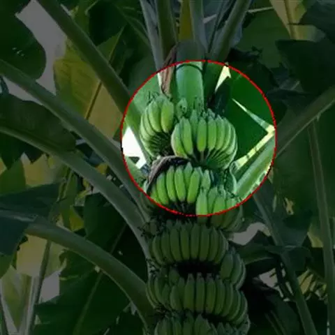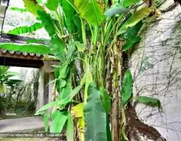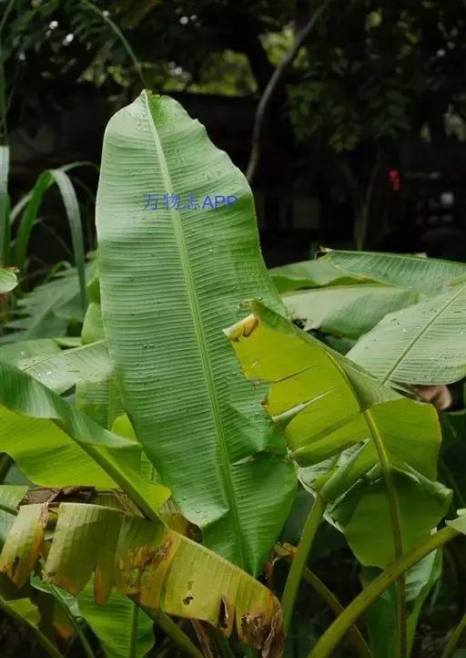 香蕉’),芭蕉科芭蕉属多年生草本植物,植株丛生,有匐匍茎;假茎浓绿有黑色斑点;叶片长圆形,…