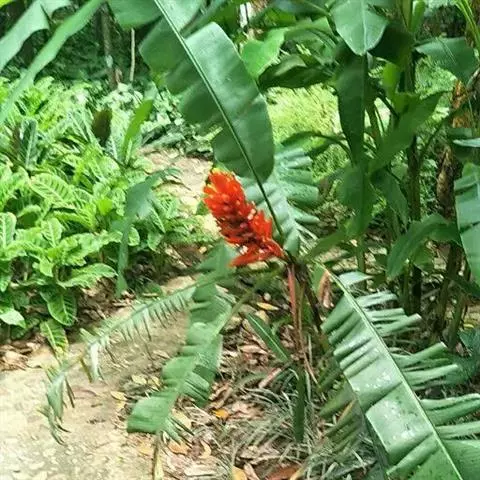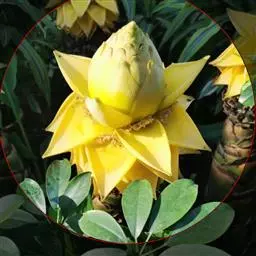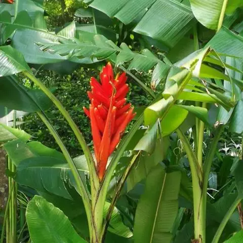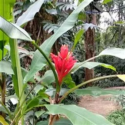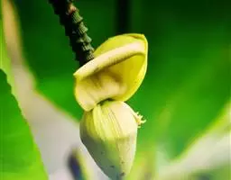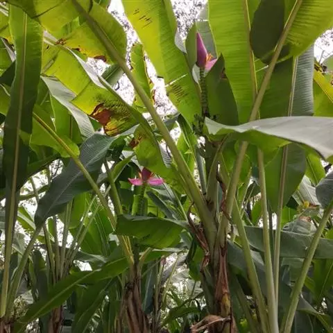 紫苞芭蕉形如一枝亭亭玉立、含苞待放的荷花,但却开在高高的芭蕉树上,这就是紫苞芭蕉。