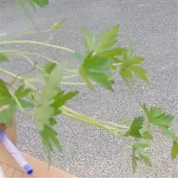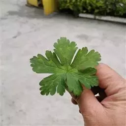 叶基生和茎生叶对生;托叶卵状三角形或上部为狭披针形,长5-8毫米,宽1-3毫米,基生叶和茎下部叶具长柄,柄长为叶片的2-3倍,被倒向短柔毛,茎上部叶柄渐短或近无柄;基生叶片圆肾形,长3-5厘米,宽4-9厘米,5深裂达2/3处,裂片倒卵状楔形,下部全缘,上部不规则状齿裂,茎生叶3裂至3/5处,裂片长卵形或宽楔形,上部齿状浅裂,先端长渐尖,表面被短伏毛,背面沿脉被短糙毛。