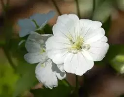 花序腋生和顶生,稍长于叶,总花梗被倒向短柔毛,有时混生腺毛,每梗具2花;苞片钻形,长3-4毫米;花梗与总花梗相似,长为花的2-4倍,花、果期通常直立;萼片长卵形或卵状椭圆形,长5-6毫米,宽2-3毫米,先端具细尖头,背面沿脉和边缘被短柔毛,有时混生开展的腺毛;花瓣白色或淡红色,倒卵形,与萼片近等长,内面基部被疏柔毛;雄蕊稍短于萼片,花丝淡棕色,下部扩展,被缘毛;雌蕊被短糙状毛,花柱分枝紫红色。蒴果长约2厘米,被短柔毛和长糙毛。花期6-8月,果期8-9月。