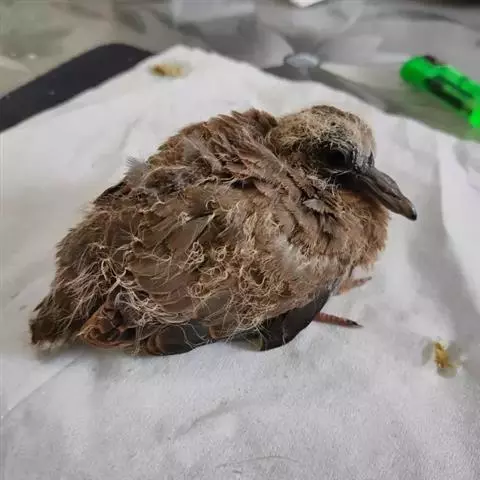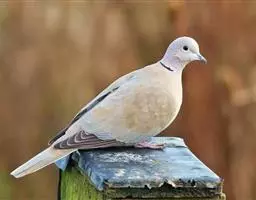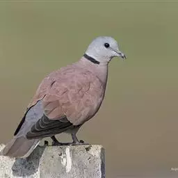 欧斑鸠体长27厘米,是一种体型略小的粉褐色斑鸠。颈侧具多黑白色细纹的斑块,翼覆羽深褐,…