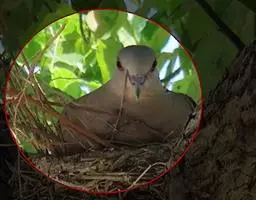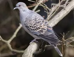 山斑鸠,是鸽形目鸽鸠科斑鸠属鸟类,又名金背斑鸠、棕背斑鸠、山鸠、金背鸠、麒麟斑、麒麟鸠、东方斑鸠、绿斑鸠、山鸽子。山斑鸠颈侧具明显黑白色条纹的块状斑,上体深褐色、具扇贝状斑纹,羽缘棕色,尾羽近黑色,下体多偏粉色。虹膜黄色,喙灰色,脚粉色。山斑鸠是留鸟,在中国常见且分布广泛。此外,还分布于不丹、尼泊尔、巴基斯坦、印度、日本等国。栖息于针阔混交林、季风常绿阔叶林、果园及农耕区,多成对活动于开阔农耕区、村舍、寺院周围及防火林带。取食于地面,主要觅食植物种子、果实、嫩芽等,也吃昆虫。山斑鸠飞翔时鼓翼快速,叫声为反复而低沉的“咕咕咕”声。繁殖期在4-7月,营巢于林中树上,通常一年繁殖2窝,窝卵数2枚,由雌雄亲鸟轮流孵卵,孵化期18~19天。山斑鸠的肉、卵可食,肉入药可益气明目、强筋壮骨,治久病气虚、衰弱无力、两目昏暗等病症。山斑鸠啄食杂草种子,对农田清除杂草有益;但有时也刨食农作物及树的种子。山斑鸠
