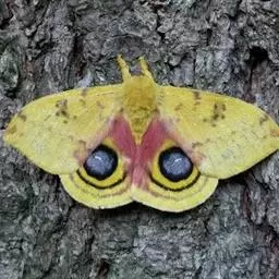 雄性的翅膀上方的是明亮的黄色。前翅有很大黑色的三角区域,黑色区域中间有一个很大的蓝点。翅膀的下方为浅黄色。 雌性和雄性差不多,颜色略微黯淡一些。