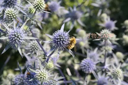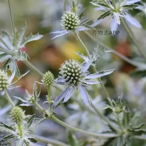 扁叶刺芹,伞形科 刺芹属 ,多年生草本。高约75cm,茎灰白色、淡紫灰色至深紫色坚硬光滑,上部分枝。基生叶长椭圆状卵形,边缘有粗锯齿。头状花序着生于每一分枝顶端,圆卵形、阔卵形或半球形;花浅蓝色,花瓣与萼片互生,膜质透明。果实长椭圆形,卵形或近圆形,花果期7-8月。扁叶刺芹是一种典型的干旱植物,即使是在恶劣环境里也充满活力,直立的茎叶,漂亮的蓝色花序,是一种很好的切花和干燥花。
