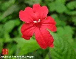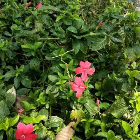 红花山牵牛是爵床科,山牵牛属植物。茎及枝条具明显或不太明显的9棱,初被短柔毛,后仅节处被毛,余无毛…