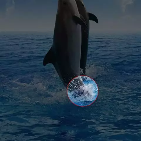 真海豚,身体细而流线型。体色十分复杂而独特,通常十字交叉型,黄褐色在前灰色在后,背面黑色向下延伸,…