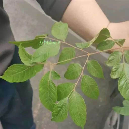 叶平展,二回羽状复叶,长45-70厘米;叶轴和叶柄向轴面常有一纵行皱曲的短柔毛;小叶9-17片,互生,很少对生,纸质或近革质,斜卵形,长3.5-7厘米,宽2-3.5厘米,顶端短尖至短渐尖,基部阔楔形或圆形,略偏斜,边缘有内弯的小锯齿,两面无毛或上面中脉上被微柔毛,下面密被短柔毛,有时杂以皱曲的毛;小叶柄长约3毫米或近无柄。