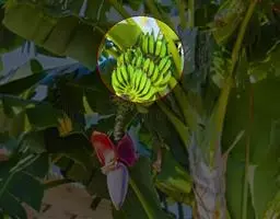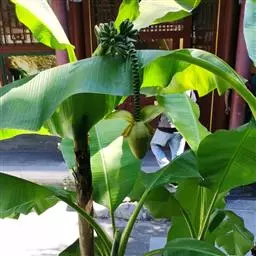香蕉’),芭蕉科芭蕉属多年生草本植物,植株丛生,有匐匍茎;假茎浓绿有黑色斑点;叶片长圆形,…