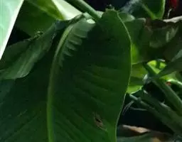 症状:初期在叶片的叶脉或周边产生许多小黑点,并积集在一块(病原菌的分生孢子),中期积集的小点(分生孢子)变褐色,叶脉及周边发黄,严重时整片蕉叶干枯。