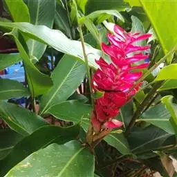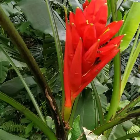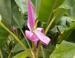 紫苞芭蕉形如一枝亭亭玉立、含苞待放的荷花,但却开在高高的芭蕉树上,这就是紫苞芭蕉。