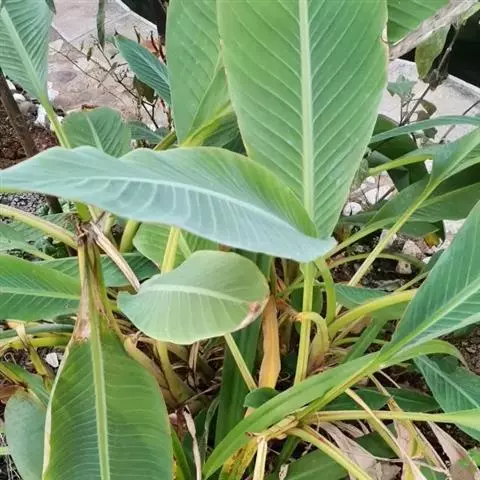 植株丛生,具匐匍茎,矮型的高3.5米以下,一般高不及2米,高型的高4~5米,假茎均浓绿而带黑斑,被白粉,尤以上部为多。