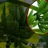 症状特点:全株性病害。叶片狭小,直立状,叶缘黄化,断断续续的深绿色条纹(俗称"起青筋")。本病因顶部叶片成束而得名。病株一般不抽花蕾,故又称"蕉公"。现蕾前后发病,如叶片已出齐,则不表现"束顶",叶片也不狭小、黄化,但幼嫩叶片主脉仍现"青筋",抽出的花蕾直牛,不结蕉或结蕉性能极差,果小而少,果端细如指头,果肉腕、无香味。
