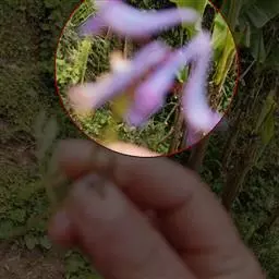 萼片小,近圆形,呈撕裂状,微透明;花瓣天蓝色,上花瓣长2-2.5厘米,花瓣片舟状卵形,背部具鸡冠状突起,距圆筒形,长1.3-1.5厘米,末端钝,略下弯,下花瓣长1-1.2厘米,具爪,内花瓣长约1厘米,花瓣片倒卵状长圆形,先端深紫色,基部2耳垂,爪线形,略短于花瓣片;花丝狭卵形,膜质,长约0.8厘米;子房线形,长5-6毫米,胚珠2列,花柱细,长约3毫米,柱头近肾形,先端具6乳突。