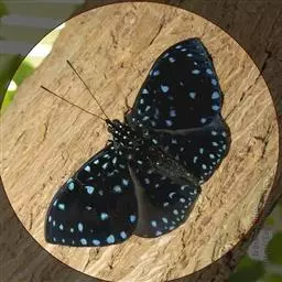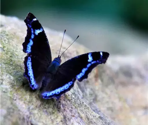 琉璃蛱蝶 Kaniska canace (Linnaeus,1763),蛱蝶科琉璃蛱蝶属,全世界记载的只一种,广布于亚州古北区及东洋区。中型蛱蝶,翅表黑色,在亚外缘有一蓝紫色宽带纵贯前后翅,此带在前翅端分断为两点,外横线至亚外缘间翅色较淡;雌雄色彩斑纹相似,但翅表蓝色带点宽圆,翅型较大,翅之腹面横脉外缘的白色斑点亦大。幼虫摄食菝契科的各种菝契;成虫出没于三至十二月,飞行迅速,有领域性,喜访花及吸食树液、动物粪便。