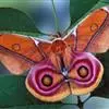 孔雀蛱蝶展翅宽50~60mm。翅膀表面红色,上、下翅有一大型彩色眼纹;翅膀腹面淡褐色,拟似烟熏枯叶…