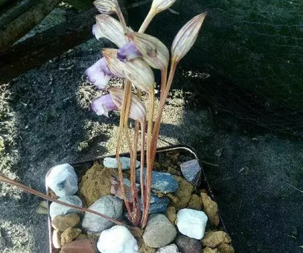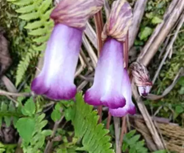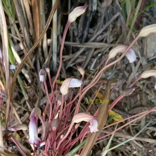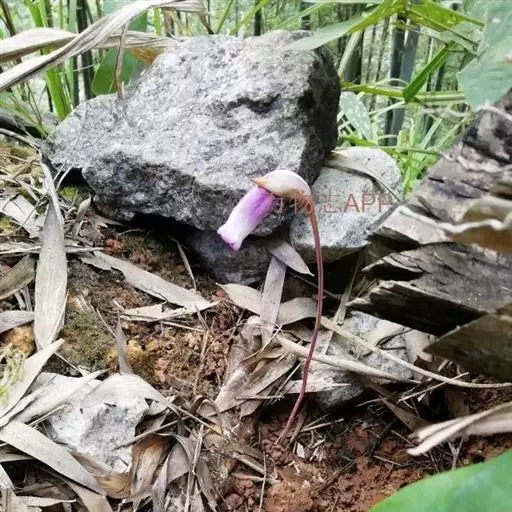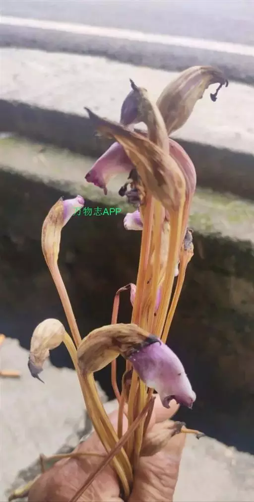 一年生寄生草本,高15-40(-50)厘米。根稍肉质,具树状细小分枝。茎黄褐色或紫红色,不分枝或自近基部处有分枝,偶尔自中部以上分枝。叶肉红色,卵状披针形或披针形,长5-10毫米,宽3-4毫米,两面乡七滑无毛。花常单生茎端,稍俯垂。花梗粗壮,常直立,长10-30(-40)厘米,直径约3毫米,无毛,常具紫红色的条纹。花萼一侧裂开至近基部,长2.5-4.5(-6.5)厘米,紫红色、黄色或黄白色,具紫红色条纹,先端急尖或渐尖,两面无毛。花冠带粘液,常与花萼同色,或有时下部白色,上部带紫色,凋谢后变绿黑色,干时变黑色,长4-6厘米,不明显的二唇形,筒部宽,稍弯曲,在花丝着生处变窄,顶端5浅裂,上唇裂片和下唇的侧裂片较短,近圆形,全缘,下唇中间裂片稍大。雄蕊4枚,内藏,花丝着生于距筒基部1.4-1.5厘米处,长7-9毫米,紫色,无毛,花药黄色,有粘液,成对粘合,仅1室发育,下方一对雄蕊的药隔基部延长成距。子房1室,侧膜胎座4个,横切面有极多分枝,花柱无毛,长1-1.5厘米,柱头膨大,肉质,淡黄色,盾状。蒴果圆锥状或长卵球形,长约2-3厘米,2瓣开裂。种子多数,细小,椭圆形,黄色,长约0.04毫米,种皮网状。花期4-8月,果期8-10月。