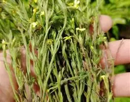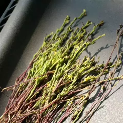 本品长15-25cm,茎单一或近基部分枝,淡黄褐色或紫色;叶肉红色,卵状披针形或披针形,长5-10mm,宽3-4mm,光滑无毛,无叶柄。花生于花葶顶端,干时黑色。蒴果圆锥状或长卵球形,长2-3cm,2瓣裂,种子黄色,椭圆形,多数。气微,味苦,以体干,带花序者为佳。