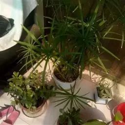 根据旱伞草水陆都可生长的特性,如用一长方形不漏水的花盆,配置高低不同数丛伞花,留出水面,点缀几块玩石,可构成一幅自然的水景,但见疏影横斜,景致宜人,别有情趣。